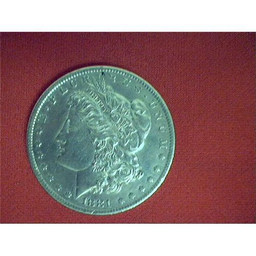 In very good condition, a 1881 0 Morgan Silver dollar.Has been cleaned,but slowly returning to dull color.