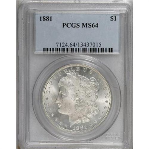 <B>1881 $1 MS64 PCGS.</B></I> PCGS Population (2760/739). NGC Census: (2846/571). Mintage: 9,163,975. Numismedia Wsl. Price for NGC/PCGS coin in MS64: $121. (#7124)<BR><BR><B>Coin Engraver:</B> George T. Morgan<BR><BR><b>Shipping:</b> Coins & Currency (<a target="_blank" href="http://www.heritageauctions.com/common/shipping.php">view shipping information</a>)
