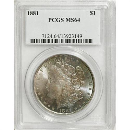 <B>1881 $1 MS64 PCGS.</B></I> PCGS Population (2791/746). NGC Census: (2883/573). Mintage: 9,163,975. Numismedia Wsl. Price for NGC/PCGS coin in MS64: $121. (#7124)<BR><BR><B>Coin Engraver:</B> George T. Morgan<BR><BR><b>Shipping:</b> Coins & Currency (<a target="_blank" href="http://www.heritageauctions.com/common/shipping.php">view shipping information</a>)