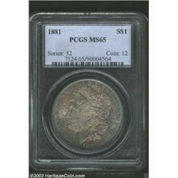 <TABLE cellSpacing=0 cellPadding=0 width="100%" bgColor=#000000 border=0><TBODY><TR><TD width="100%"><TABLE cellSpacing=1 cellPadding=3 width="100%" border=0><TBODY><TR><TD width="100%" bgColor=#79735c><FONT face=arial color=#ffffff size=3><B>Description</B> </FONT></TD></TR><TR><TD width="100%" bgColor=#ffffff><FONT face=arial size=2><B>1881 $1 MS65 PCGS.</B></I> Interesting toning in russet, brown-gray, and rose. Smooth and lustrous underneath, with a slightly soft strike. Very nice eye appeal, if you enjoy deep patina. </FONT></TD></TR></TBODY></TABLE></TD></TR></TBODY></TABLE><BR><A name=PricesRealized></A><TABLE cellSpacing=0 cellPadding=0 width="100%" bgColor=#000000 border=0><TBODY><TR><TD width="100%"><TABLE cellSpacing=1 cellPadding=3 width="100%" border=0><TBODY><TR><TD width="100%" bgColor=#79735c><A name=PR><FONT face=arial color=#ffffff size=3><B>Previous Prices from Heritage Auctions</B> </FONT></A></TD></TR><TR><TD bgColor=#f6f6ed><TABLE cellSpacing=0 cellPadding=0 width="100%" border=1><TBODY><TR><TD align=middle width="33%"><B>Date</B></TD><TD align=middle width="33%"><B>Service</B></TD><TD align=middle width="33%"><B>Price</B></TD></TR><TR bgColor=whitesmoke><TD width="33%"><B>08/13/1996</B></TD><TD width="33%">NGC</TD><TD width="33%">$385.00</TD></TR><TR bgColor=whitesmoke><TD width="33%"><B>08/13/1996</B></TD><TD width="33%">NGC</TD><TD width="33%">$385.00</TD></TR><TR bgColor=whitesmoke><TD width="33%"><B>09/18/1996</B></TD><TD width="33%">NGC</TD><TD width="33%">$473.00</TD></TR><TR bgColor=whitesmoke><TD width="33%"><B>09/18/1996</B></TD><TD width="33%">NGC</TD><TD width="33%">$473.00</TD></TR><TR bgColor=whitesmoke><TD width="33%"><B>06/01/2000</B></TD><TD width="33%">NGC</TD><TD width="33%">$529.00</TD></TR><TR bgColor=whitesmoke><TD width="33%"><B>06/01/2000</B></TD><TD width="33%">NGC</TD><TD width="33%">$529.00</TD></TR><TR bgColor=whitesmoke><TD width="33%"><B>09/01/1999</B></TD><TD width="33%">NGC</TD><TD width="33%">$518.00</TD></TR><TR bgColor=whitesmoke><TD width="33%"><B>09/01/1999</B></TD><TD width="33%">NGC</TD><TD width="33%">$518.00</TD></TR><TR bgColor=whitesmoke><TD width="33%"><B>08/06/2003</B></TD><TD width="33%">NGC</TD><TD width="33%">$460.00</TD></TR><TR bgColor=whitesmoke><TD width="33%"><B>08/06/2003</B></TD><TD width="33%">NGC</TD><TD width="33%">$460.00</TD></TR><TR bgColor=whitesmoke><TD width="33%"><B>03/24/2003</B></TD><TD width="33%">NGC</TD><TD width="33%">$471.50</TD></TR><TR bgColor=whitesmoke><TD width="33%"><B>03/24/2003</B></TD><TD width="33%">NGC</TD><TD width="33%">$471.50</TD></TR><TR bgColor=whitesmoke><TD width="33%"><B>07/15/2003</B></TD><TD width="33%">NGC</TD><TD width="33%">$552.00</TD></TR><TR bgColor=whitesmoke><TD width="33%"><B>07/15/2003</B></TD><TD width="33%">NGC</TD><TD width="33%">$552.00</TD></TR><TR bgColor=whitesmoke><TD width="33%"><B>07/15/2003</B></TD><TD width="33%">NGC</TD><TD width="33%">$552.00</TD></TR><TR bgColor=whitesmoke><TD width="33%"><B>07/15/2003</B></TD><TD width="33%">NGC</TD><TD width="33%">$552.00</TD></TR><TR bgColor=whitesmoke><TD width="33%"><B>07/01/2003</B></TD><TD width="33%">NGC</TD><TD width="33%">$552.00</TD></TR><TR bgColor=whitesmoke><TD width="33%"><B>07/01/2003</B></TD><TD width="33%">NGC</TD><TD width="33%">$552.00</TD></TR><TR bgColor=whitesmoke><TD width="33%"><B>03/01/2003</B></TD><TD width="33%">NGC</TD><TD width="33%">$517.50</TD></TR><TR bgColor=whitesmoke><TD width="33%"><B>03/01/2003</B></TD><TD width="33%">NGC</TD><TD width="33%">$517.50</TD></TR><TR bgColor=whitesmoke><TD width="33%"><B>06/10/2002</B></TD><TD width="33%">NGC</TD><TD width="33%">$270.25</TD></TR><TR bgColor=whitesmoke><TD width="33%"><B>06/10/2002</B></TD><TD width="33%">NGC</TD><TD width="33%">$270.25</TD></TR><TR bgColor=whitesmoke><TD width="33%"><B>01/14/2003</B></TD><TD width="33%">PCGS</TD><TD width="33%">$552.00</TD></TR><TR bgColor=whitesmoke><TD width="33%"><B>01/14/2003</B></TD><TD width="33%">PCGS</TD><TD width="33%">$552.00</TD></TR><TR bgColor=whitesmoke><TD width="33%"><B>12/31/2002</B></TD><TD width="33%">PCGS</TD><TD width="33%">$603.75</TD></TR><TR bgColor=whitesmoke><TD width="33%"><B>12/31/2002</B></TD><TD width="33%">PCGS</TD><TD width="33%">$603.75</TD></TR><TR bgColor=whitesmoke><TD width="33%"><B>01/11/2003</B></TD><TD width="33%">PCGS</TD><TD width="33%">$471.50</TD></TR><TR bgColor=whitesmoke><TD width="33%"><B>01/11/2003</B></TD><TD width="33%">PCGS</TD><TD width="33%">$471.50</TD></TR><TR bgColor=whitesmoke><TD width="33%"><B>01/11/2003</B></TD><TD width="33%">PCGS</TD><TD width="33%">$805.00</TD></TR><TR bgColor=whitesmoke><TD width="33%"><B>01/11/2003</B></TD><TD width="33%">PCGS</TD><TD width="33%">$805.00</TD></TR><TR bgColor=whitesmoke><TD width="33%"><B>12/31/2002</B></TD><TD width="33%">PCGS</TD><TD width="33%">$603.75</TD></TR><TR bgColor=whitesmoke><TD width="33%"><B>12/31/2002</B></TD><TD width="33%">PCGS</TD><TD width="33%">$603.75</TD></TR><TR bgColor=whitesmoke><TD width="33%"><B>11/26/2002</B></TD><TD width="33%">PCGS</TD><TD width="33%">$632.50</TD></TR><TR bgColor=whitesmoke><TD width="33%"><B>11/26/2002</B></TD><TD width="33%">PCGS</TD><TD width="33%">$632.50</TD></TR><TR bgColor=whitesmoke><TD width="33%"><B>11/23/2002</B></TD><TD width="33%">PCGS</TD><TD width="33%">$471.50</TD></TR><TR bgColor=whitesmoke><TD width="33%"><B>11/23/2002</B></TD><TD width="33%">PCGS</TD><TD width="33%">$471.50</TD></TR><TR bgColor=whitesmoke><TD width="33%"><B>11/12/2002</B></TD><TD width="33%">PCGS</TD><TD width="33%">$603.75</TD></TR><TR bgColor=whitesmoke><TD width="33%"><B>11/12/2002</B></TD><TD width="33%">PCGS</TD><TD width="33%">$603.75</TD></TR><TR bgColor=whitesmoke><TD width="33%"><B>10/29/2002</B></TD><TD width="33%">PCGS</TD><TD width="33%">$575.00</TD></TR><TR bgColor=whitesmoke><TD width="33%"><B>10/29/2002</B></TD><TD width="33%">PCGS</TD><TD width="33%">$575.00</TD></TR><TR bgColor=whitesmoke><TD width="33%"><B>06/24/2003</B></TD><TD width="33%">PCGS</TD><TD 