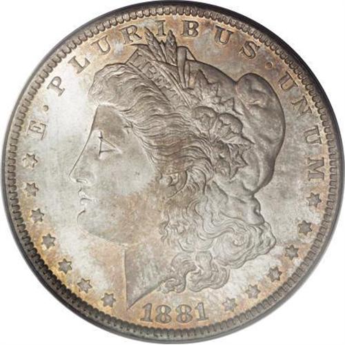 <B>1881 $1 MS66 PCGS.</B></I> Beautiful powder-blue and golden-brown toning alternates across this lustrous and exactingly struck Premium Gem. The preservation is exceptional, and the eye appeal is superior. Much scarcer than the low mintage 1881-CC at the MS66 level. Population: 57 in 66, 2 finer (1/08).<BR><I>From The Oxford Collection.</B></I><BR><BR><B>Coin Engraver:</B> George T. Morgan<BR><BR><b>Shipping:</b> Coins & Currency (<a target="_blank" href="http://www.heritageauctions.com/common/shipping.php">view shipping information</a>)