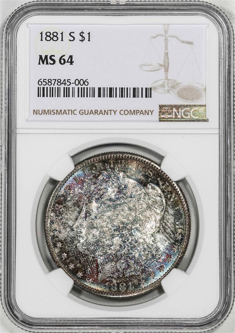 One 1881 $1 Morgan Silver Dollar Coin NGC MS64 Nice Toning. NGC Certified.