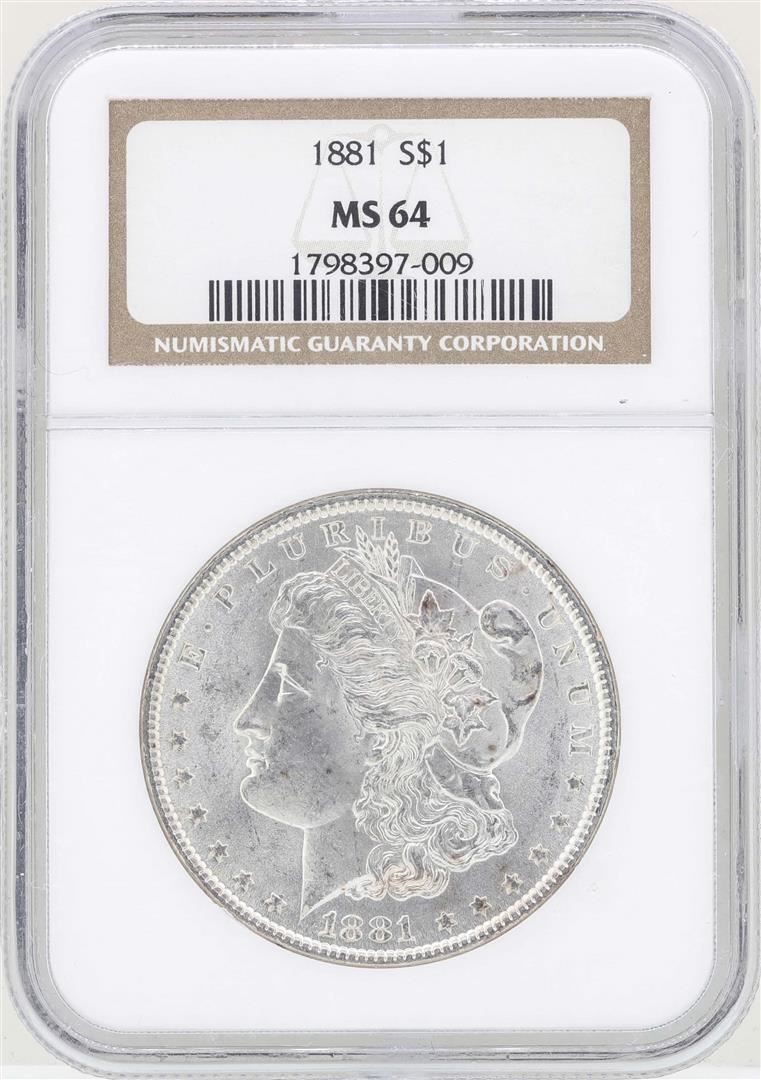 One 1881 $1 Morgan Silver Dollar Coin NGC MS64. NGC Certified.