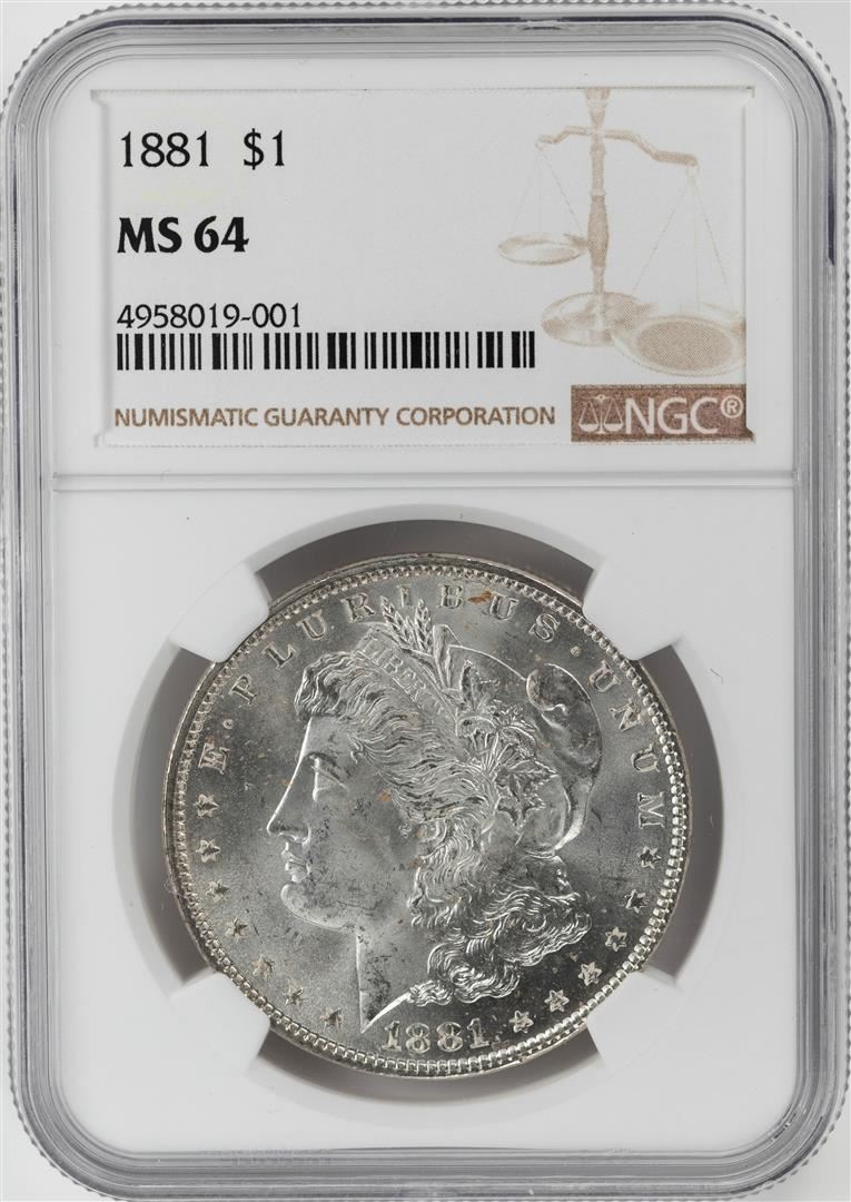 One 1881 $1 Morgan Silver Dollar Coin NGC MS64. NGC Certified.