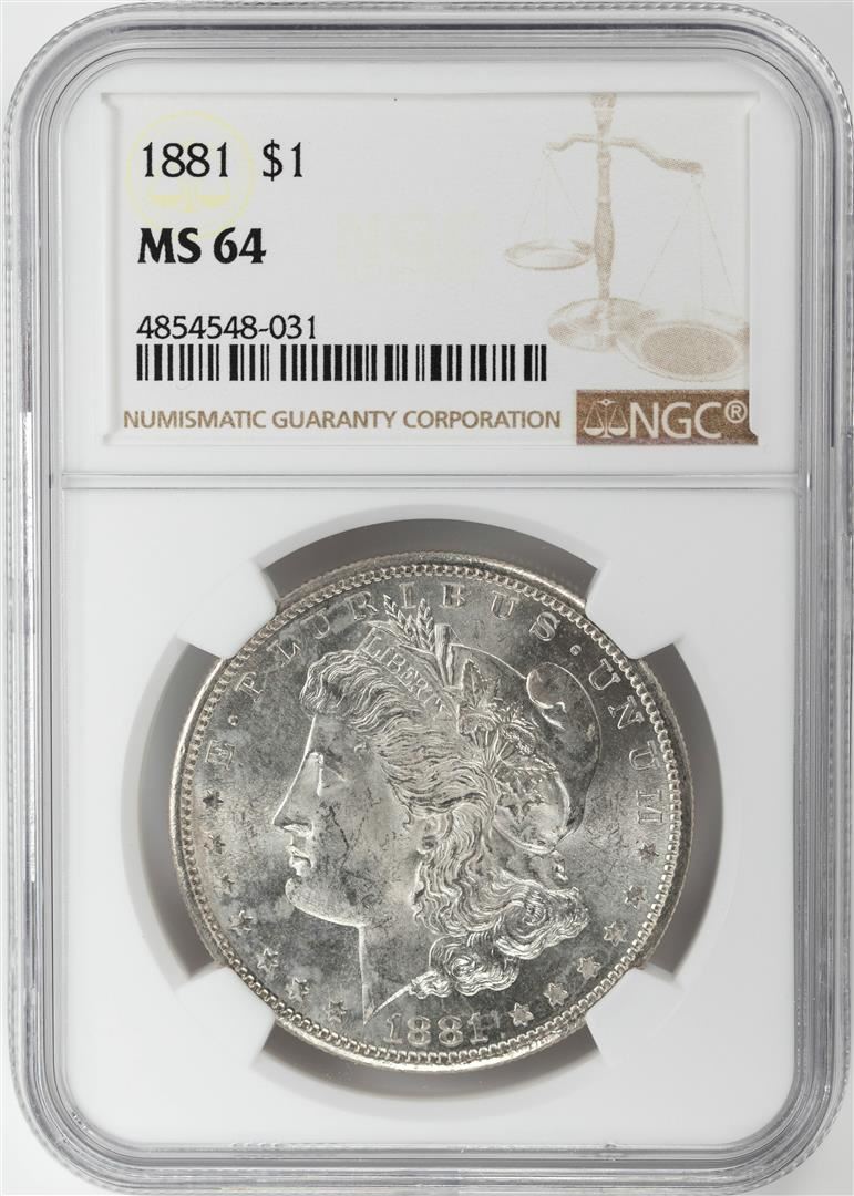 One 1881 $1 Morgan Silver Dollar Coin NGC MS64. NGC Certified.