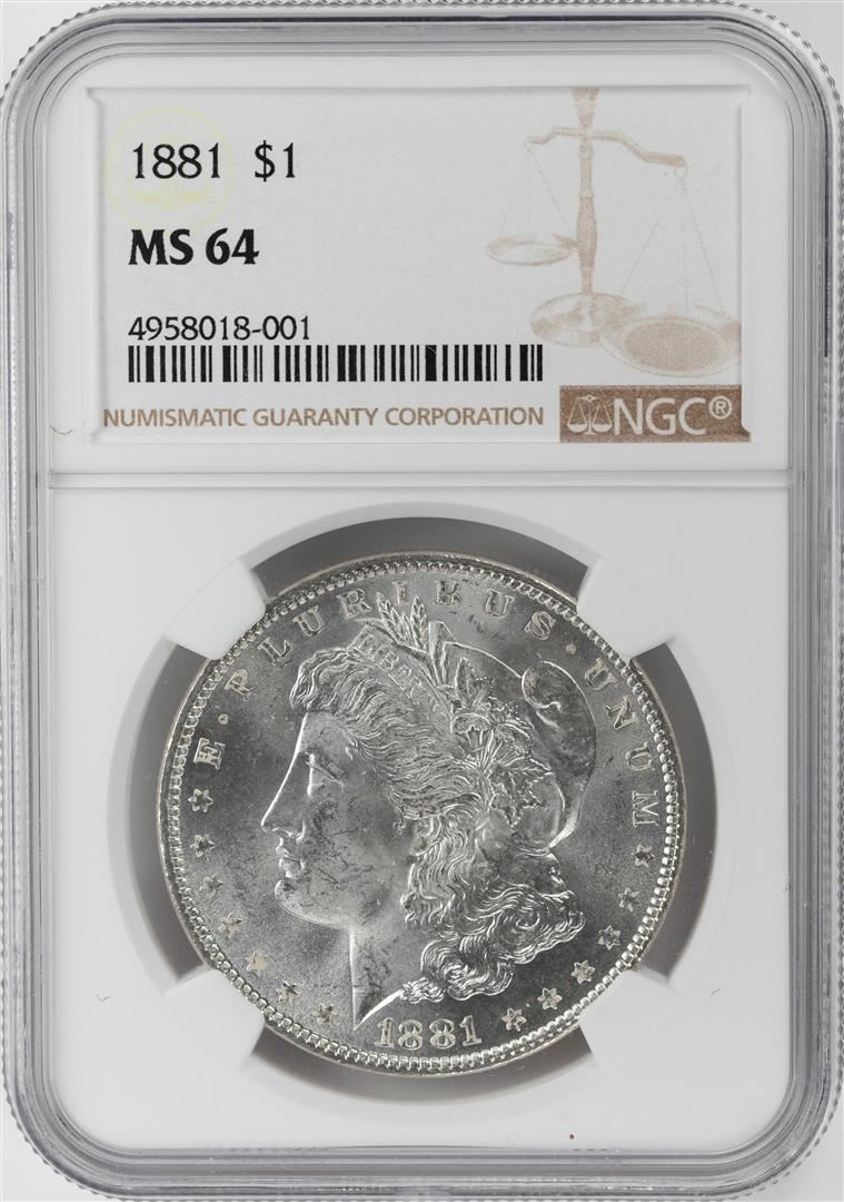 One 1881 $1 Morgan Silver Dollar Coin NGC MS64. NGC Certified.