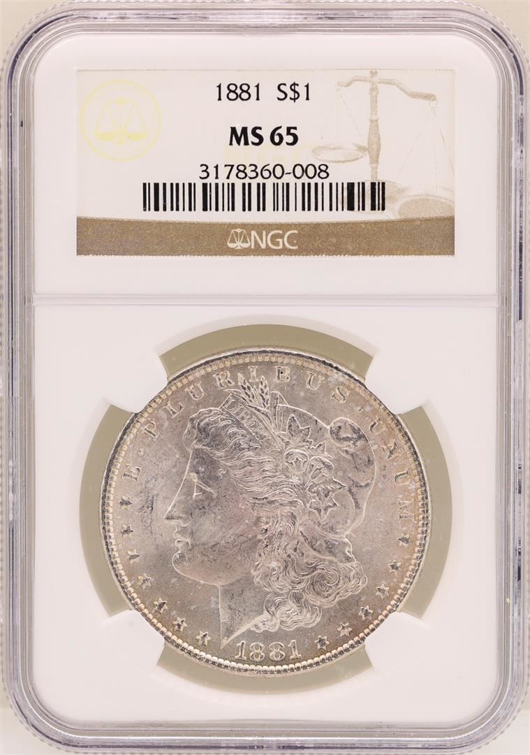 One 1881 $1 Morgan Silver Dollar Coin NGC MS65. NGC Certified.