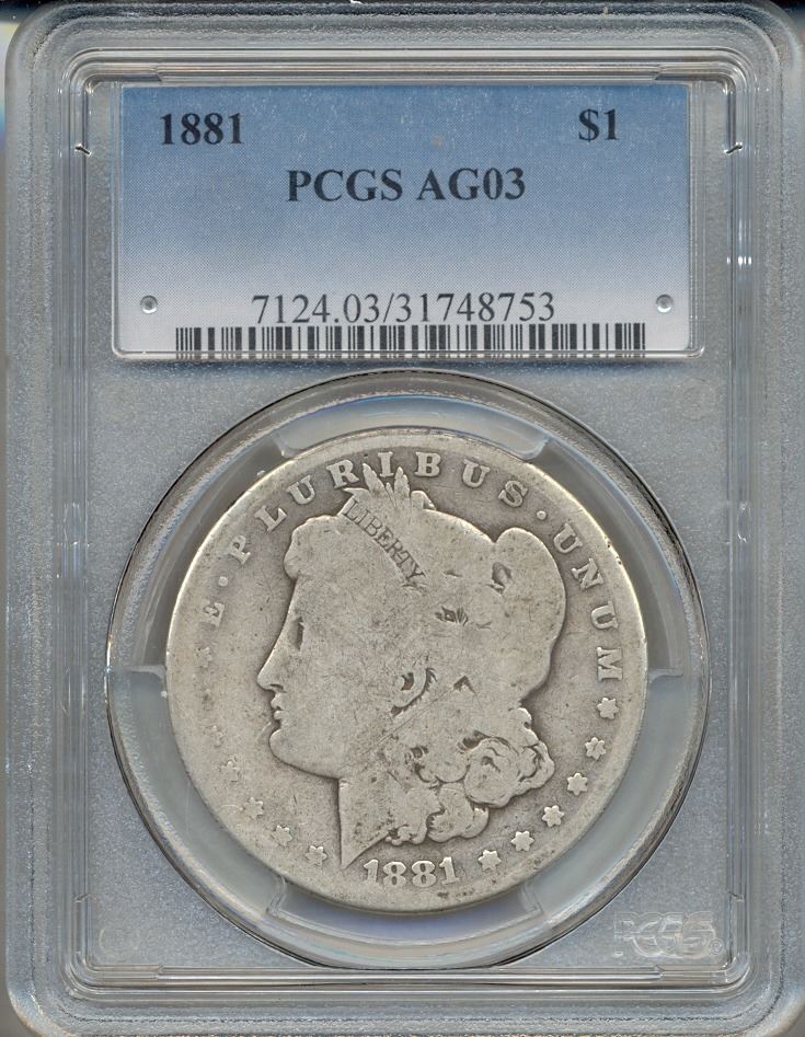 One 1881 $1 Morgan Silver Dollar Coin PCGS AG03.