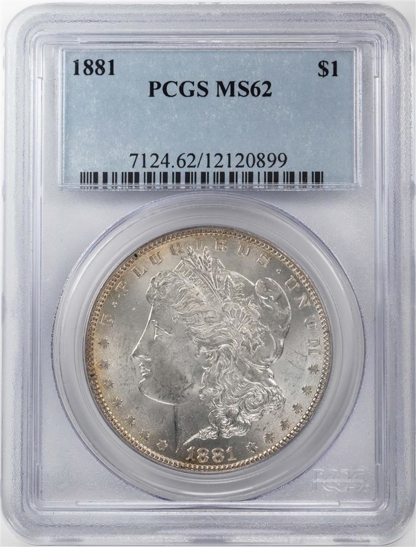 One 1881 $1 Morgan Silver Dollar Coin PCGS MS62. PCGS Graded.
