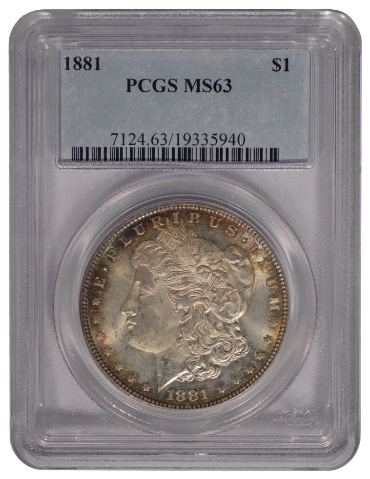 One 1881 $1 Morgan Silver Dollar Coin PCGS MS63.