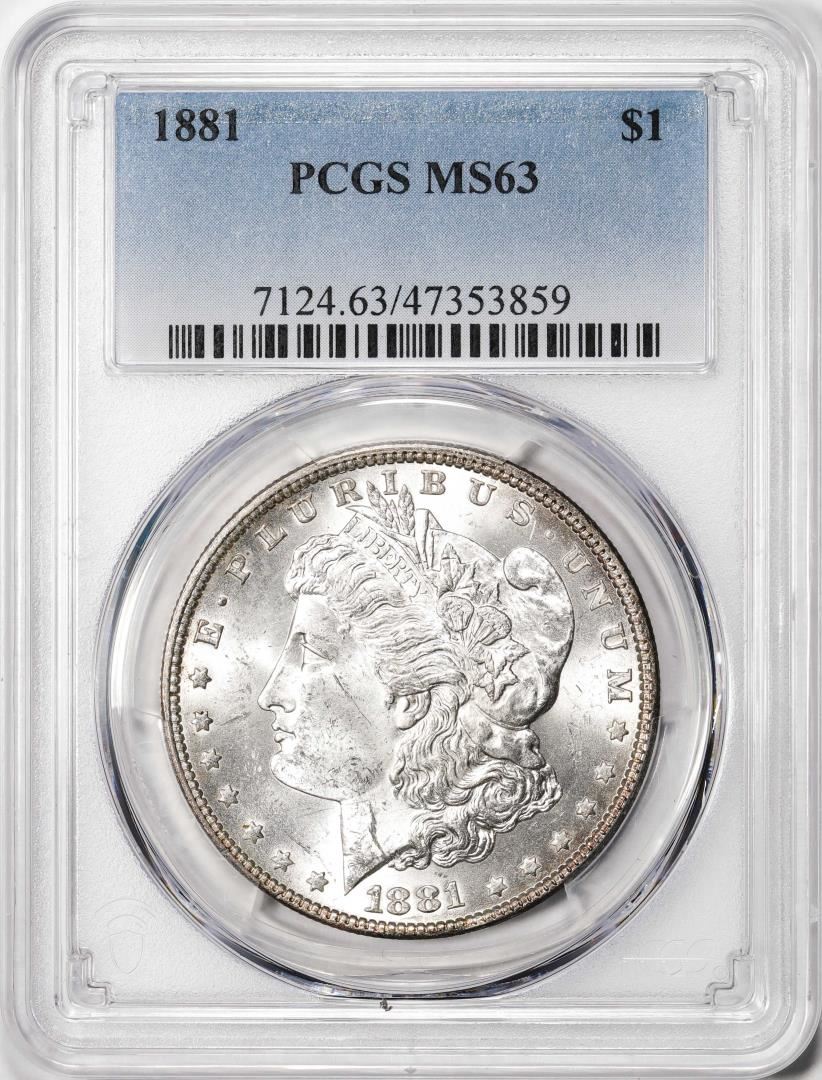 One 1881 $1 Morgan Silver Dollar Coin PCGS MS63. PCGS Graded.