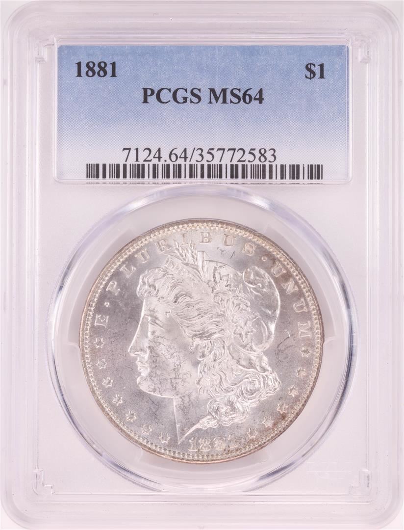One 1881 $1 Morgan Silver Dollar Coin PCGS MS64. PCGS Graded.