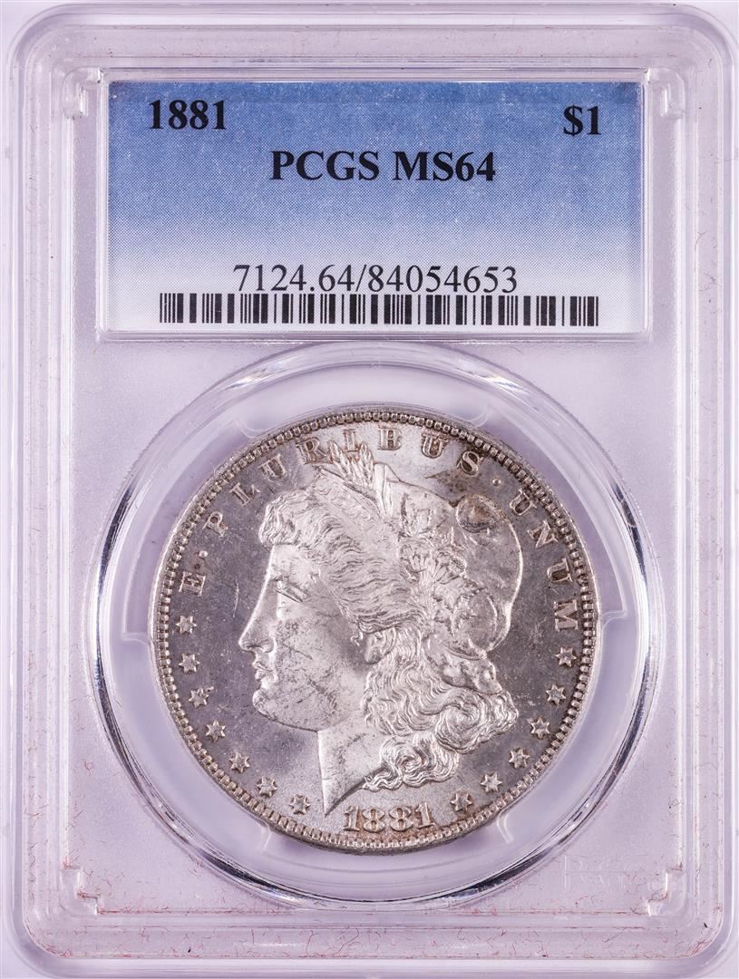 One 1881 $1 Morgan Silver Dollar Coin PCGS MS64. PCGS Graded.