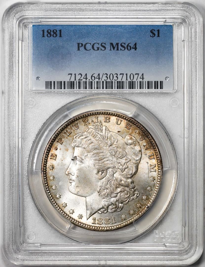 One 1881 $1 Morgan Silver Dollar Coin PCGS MS64. PCGS Graded.
