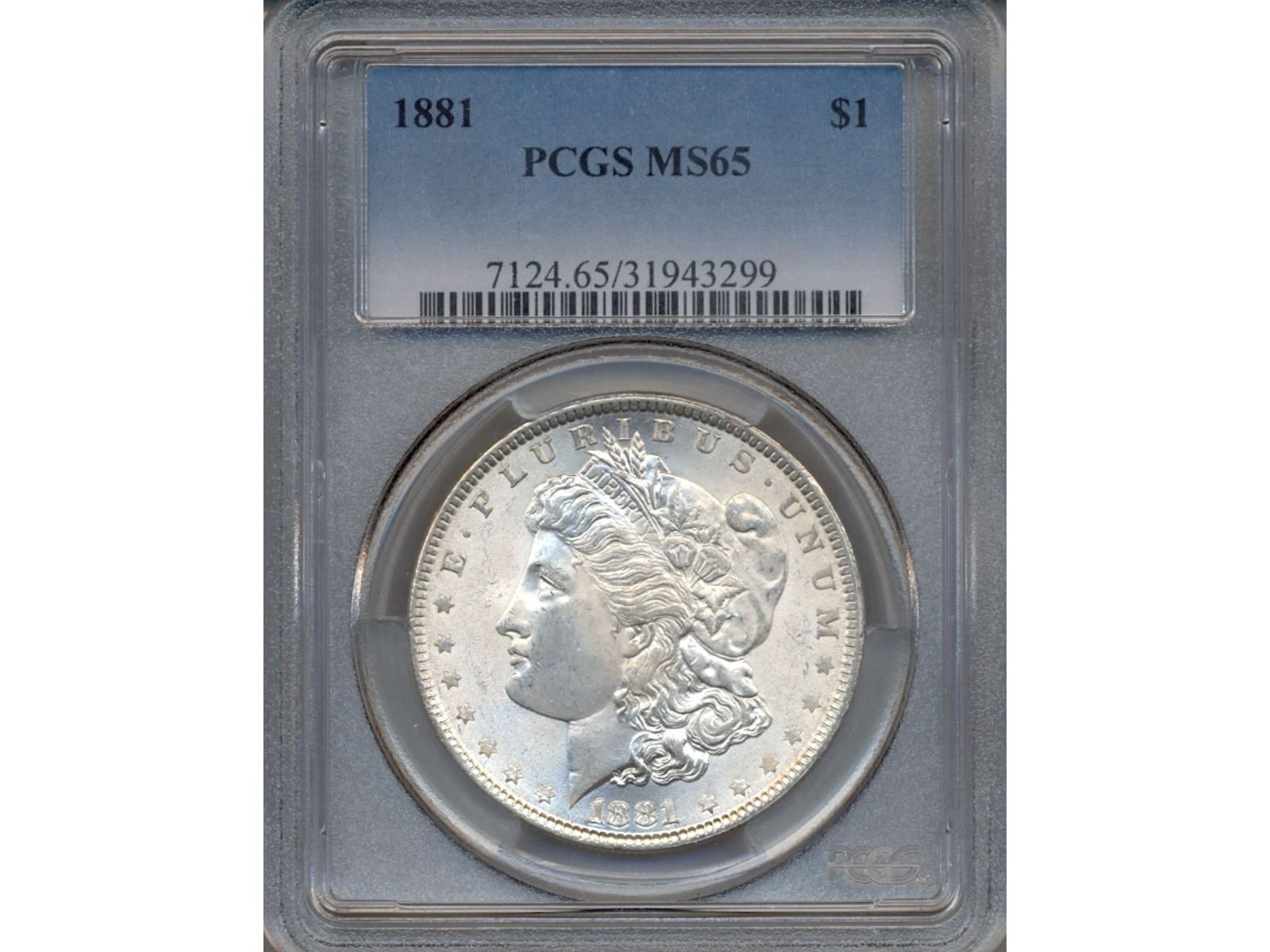 One 1881 $1 Morgan Silver Dollar Coin PCGS MS65.