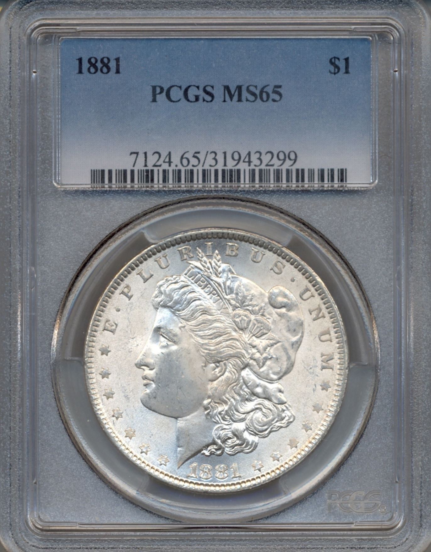 One 1881 $1 Morgan Silver Dollar Coin PCGS MS65.