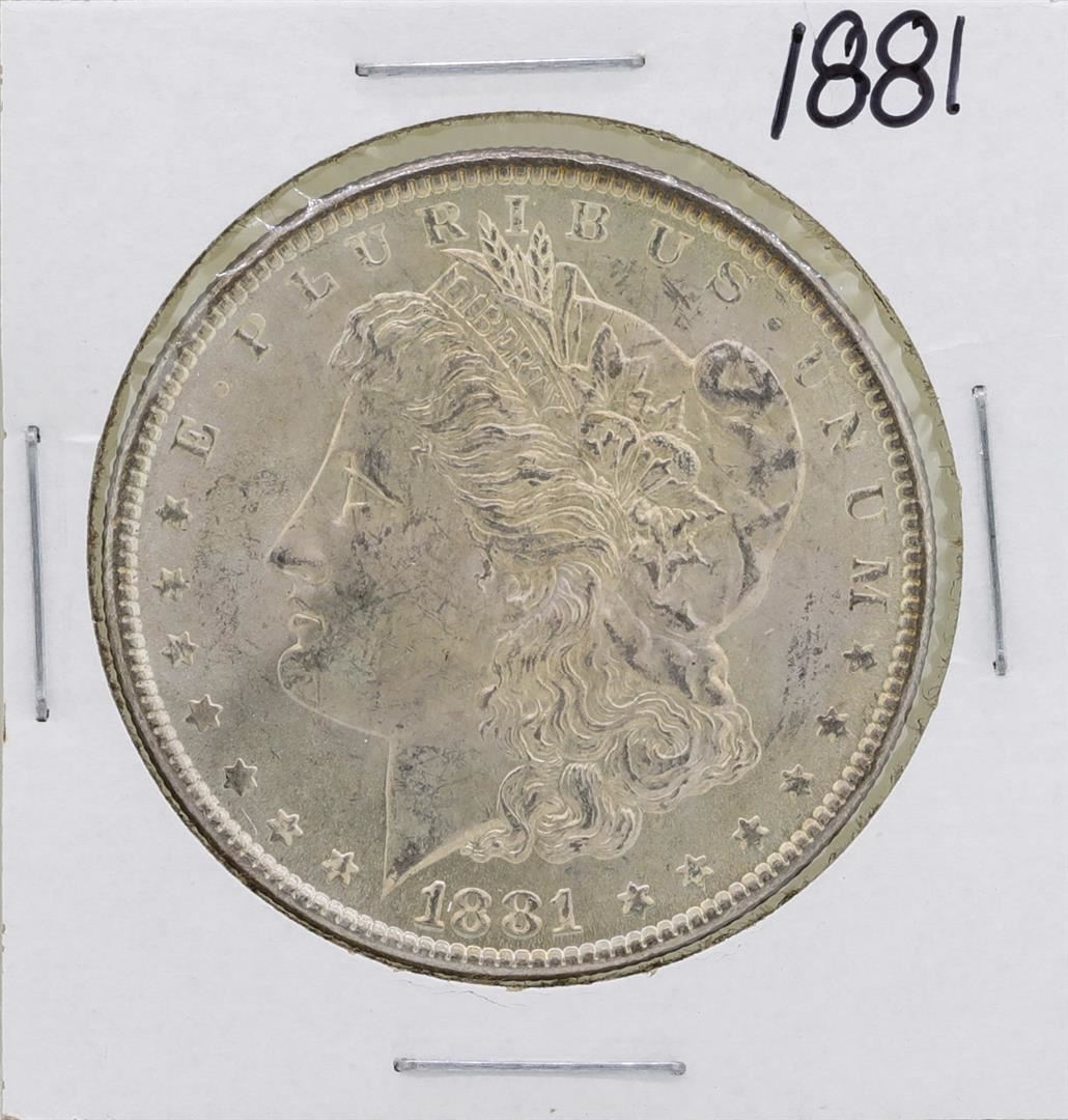 One 1881 $1 Morgan Silver Dollar Coin.