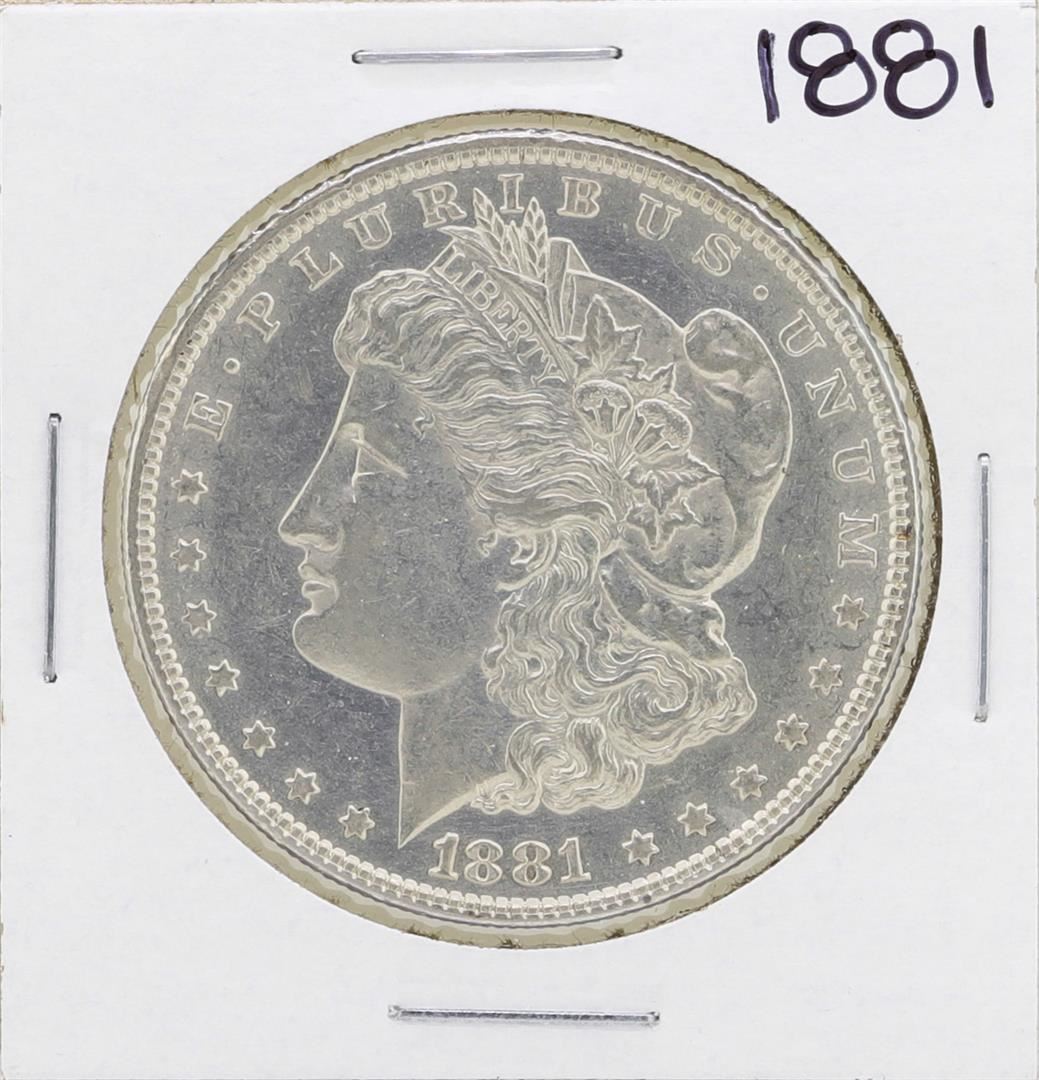 One 1881 $1 Morgan Silver Dollar Coin.
