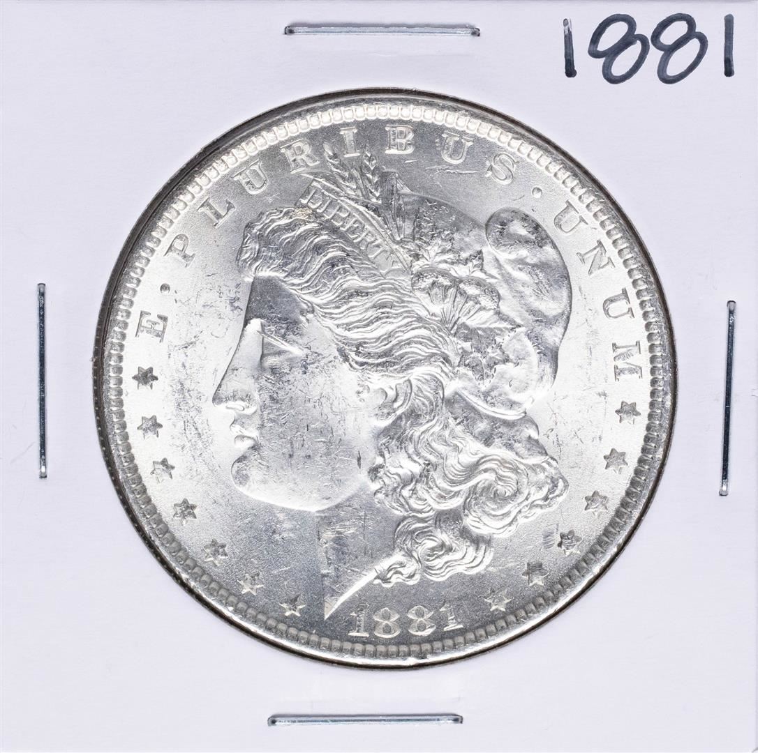 One 1881 $1 Morgan Silver Dollar Coin.
