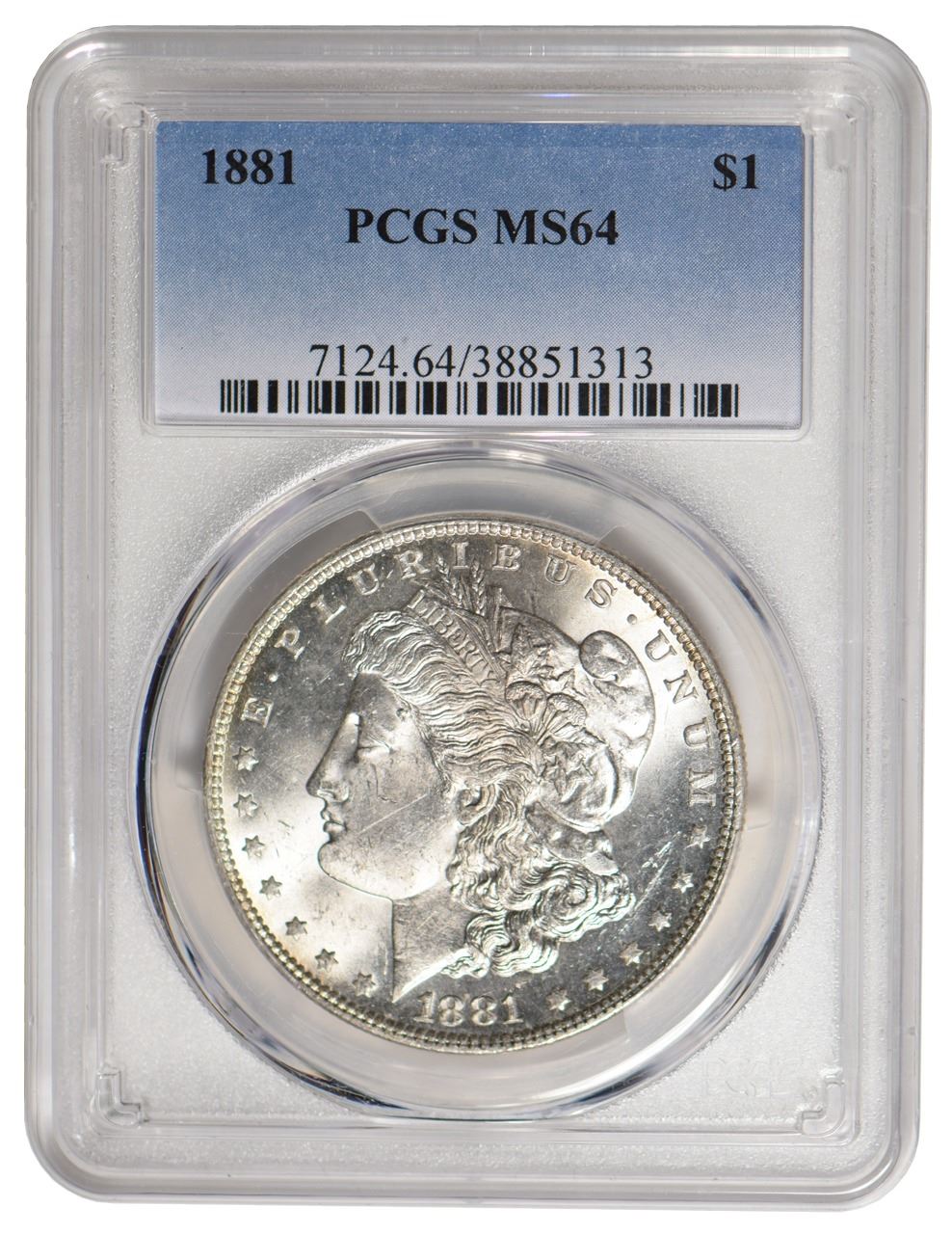 One 1881 $1 Morgan Silver Dollar PCGS MS64.