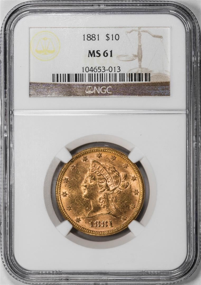 One 1881 $10 Liberty Head Eagle Gold Coin NGC MS61. NGC Certified.