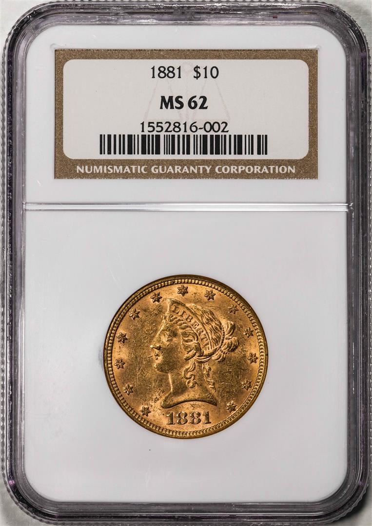 One 1881 $10 Liberty Head Eagle Gold Coin NGC MS62. NGC Certified.