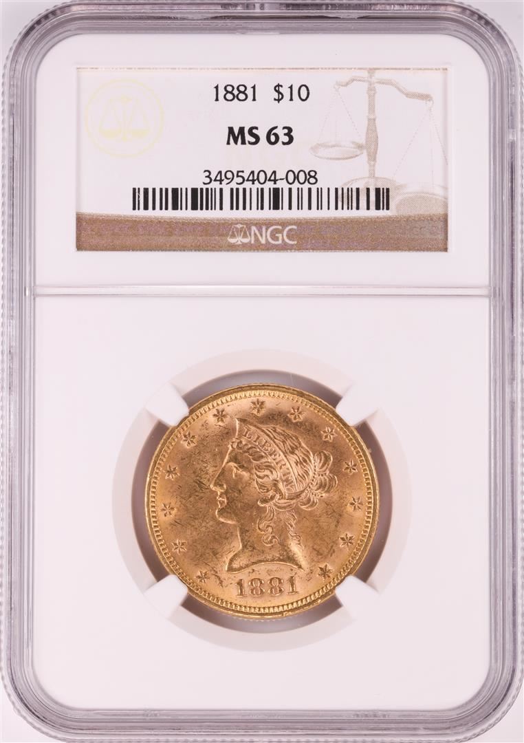 One 1881 $10 Liberty Head Eagle Gold Coin NGC MS63. NGC Certified.
