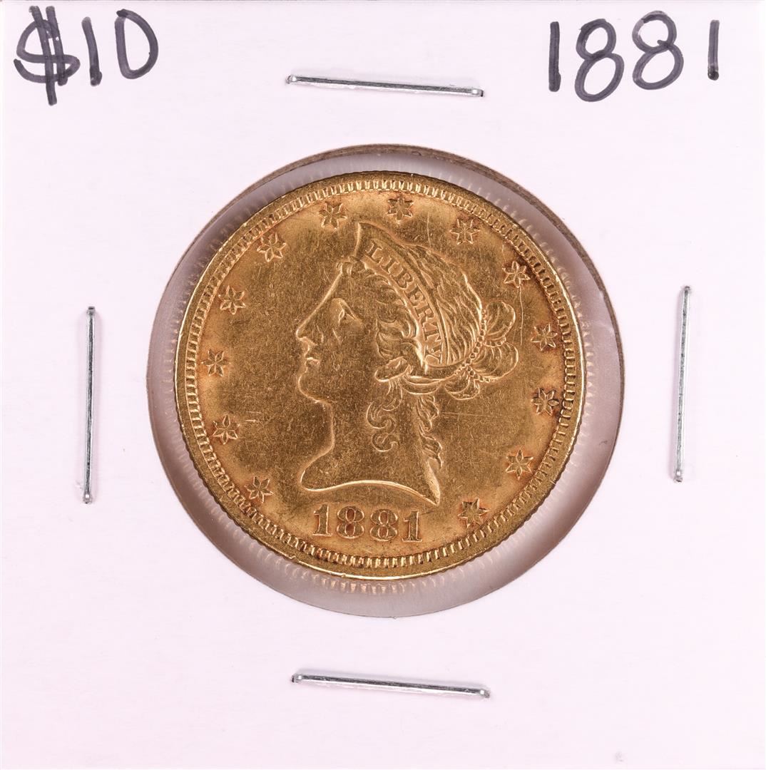 One 1881 $10 Liberty Head Eagle Gold Coin.