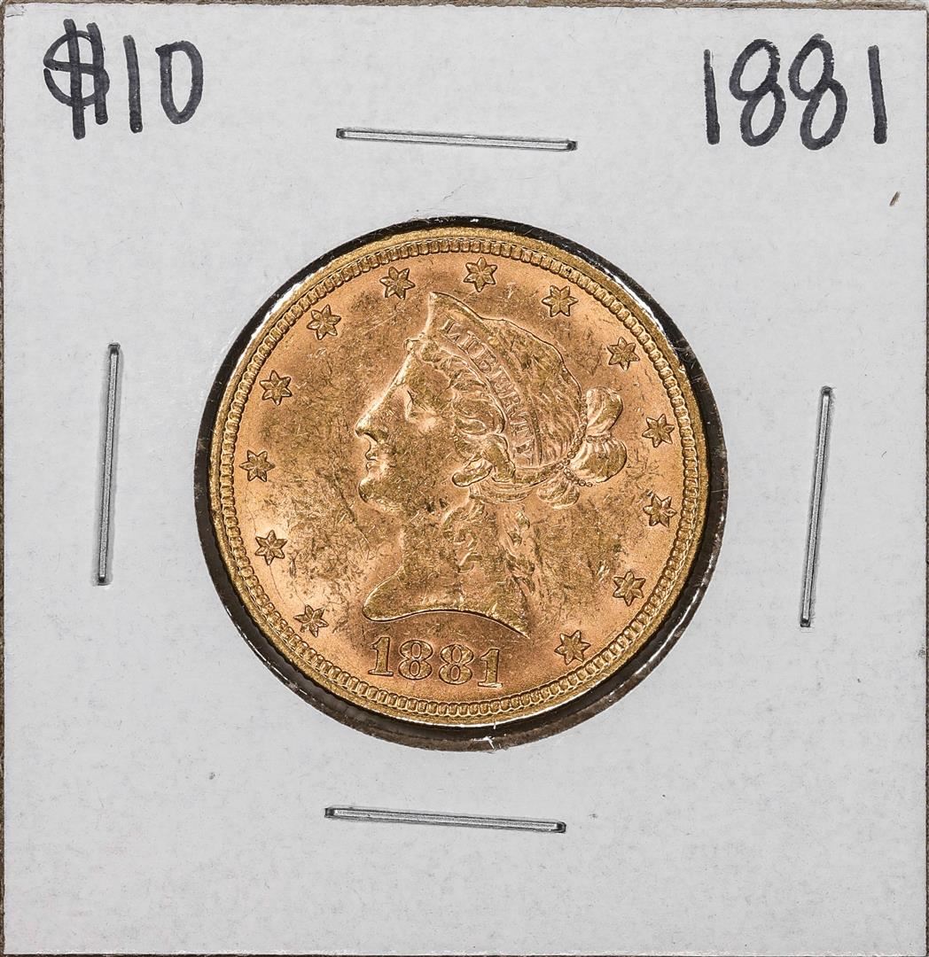 One 1881 $10 Liberty Head Eagle Gold Coin.