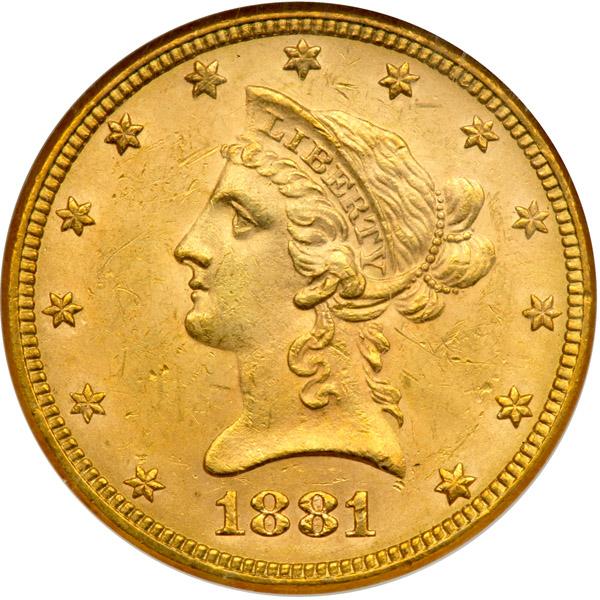 1881 $10 Liberty. NGC graded MS-63. Frosty (PCGS # 8691) .