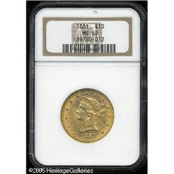 <B>1881 $10 MS63 NGC.</B></I> A pretty coin rich with golden and pink hues. This piece is well struck and displays relatively few marks of significance.<BR><I>Ex: 2000 FUN Signature Sale (Heritage 1/00).</B></I><BR><I>From The Richard J. Chouinard Collection of United States Coins, Part Two.</B></I> Lot:8772
