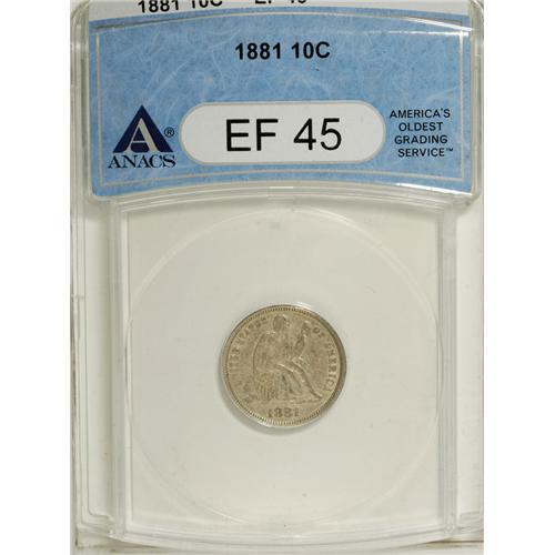 1881 10C XF45 ANACS. NGC Census: (2/52). PCGS Popu