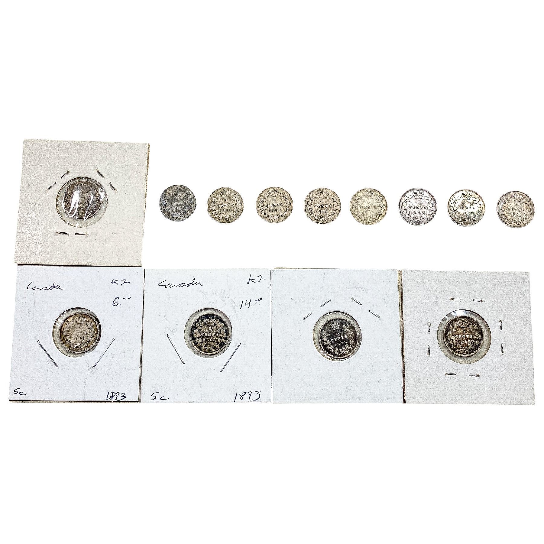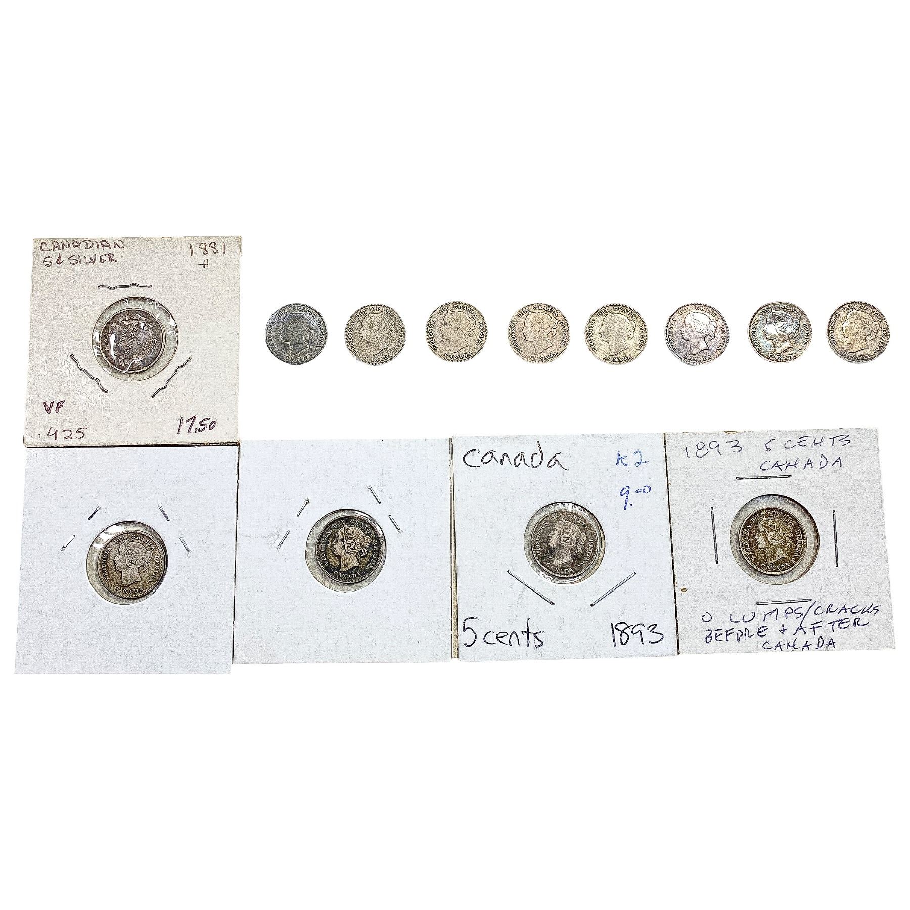 1881-1882 Better Date Canada 5 Cent Silver [13 Coins]