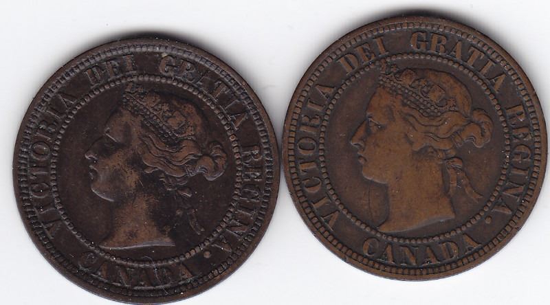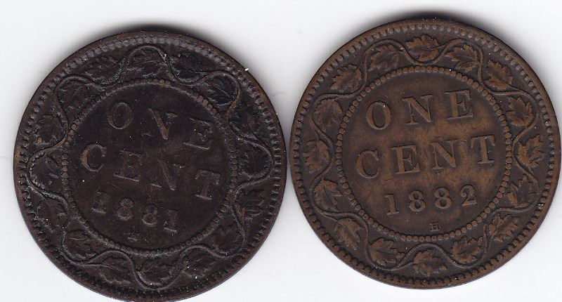 1881 & 1882H Canadian Victorian Large One Cent Coins - Fine - Fine+ Condition