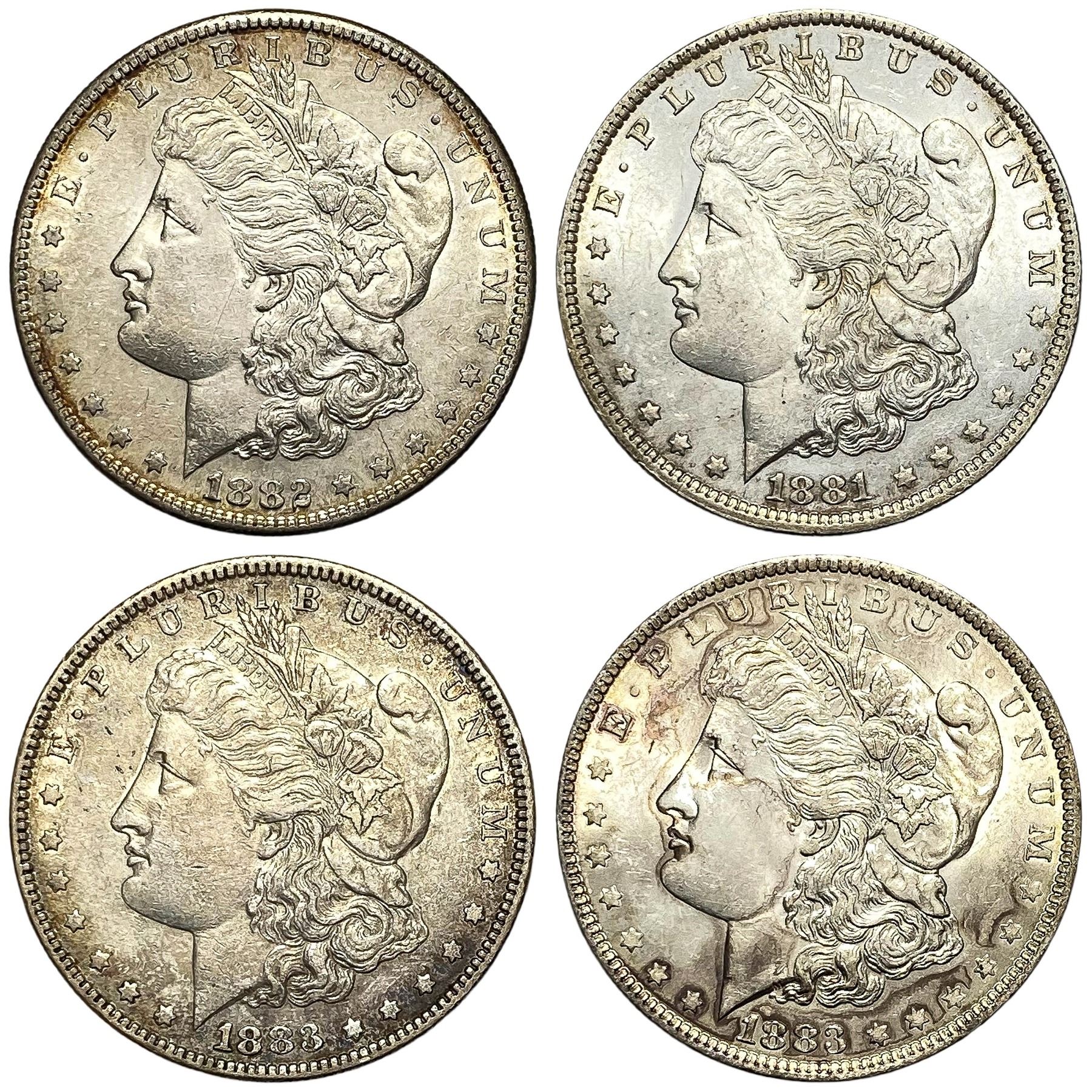 1881-1883 UNC Morgan Silver Dollar Lot [4 Coins]