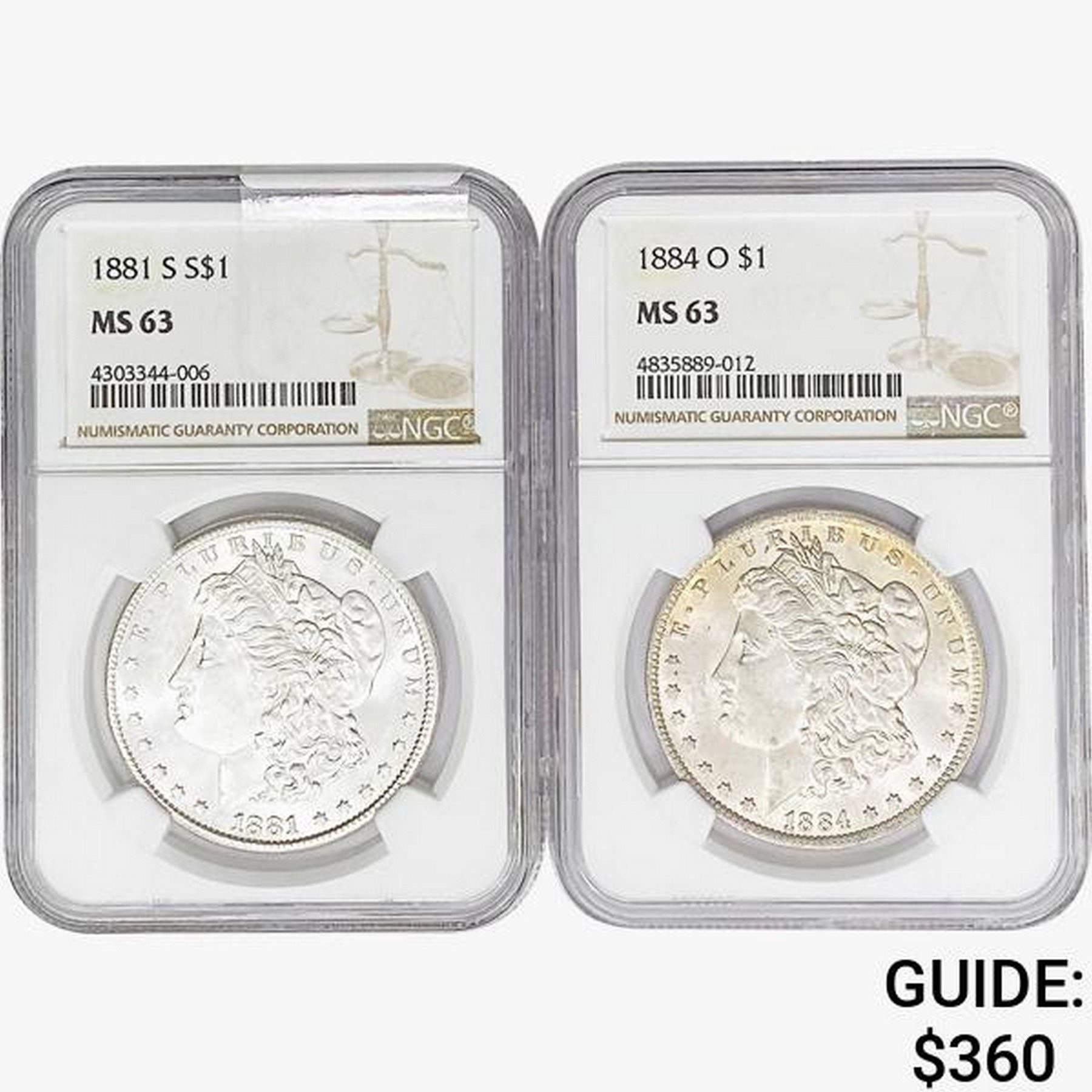 1881&1884 [2] Morgan Silver Dollar NGC MS63