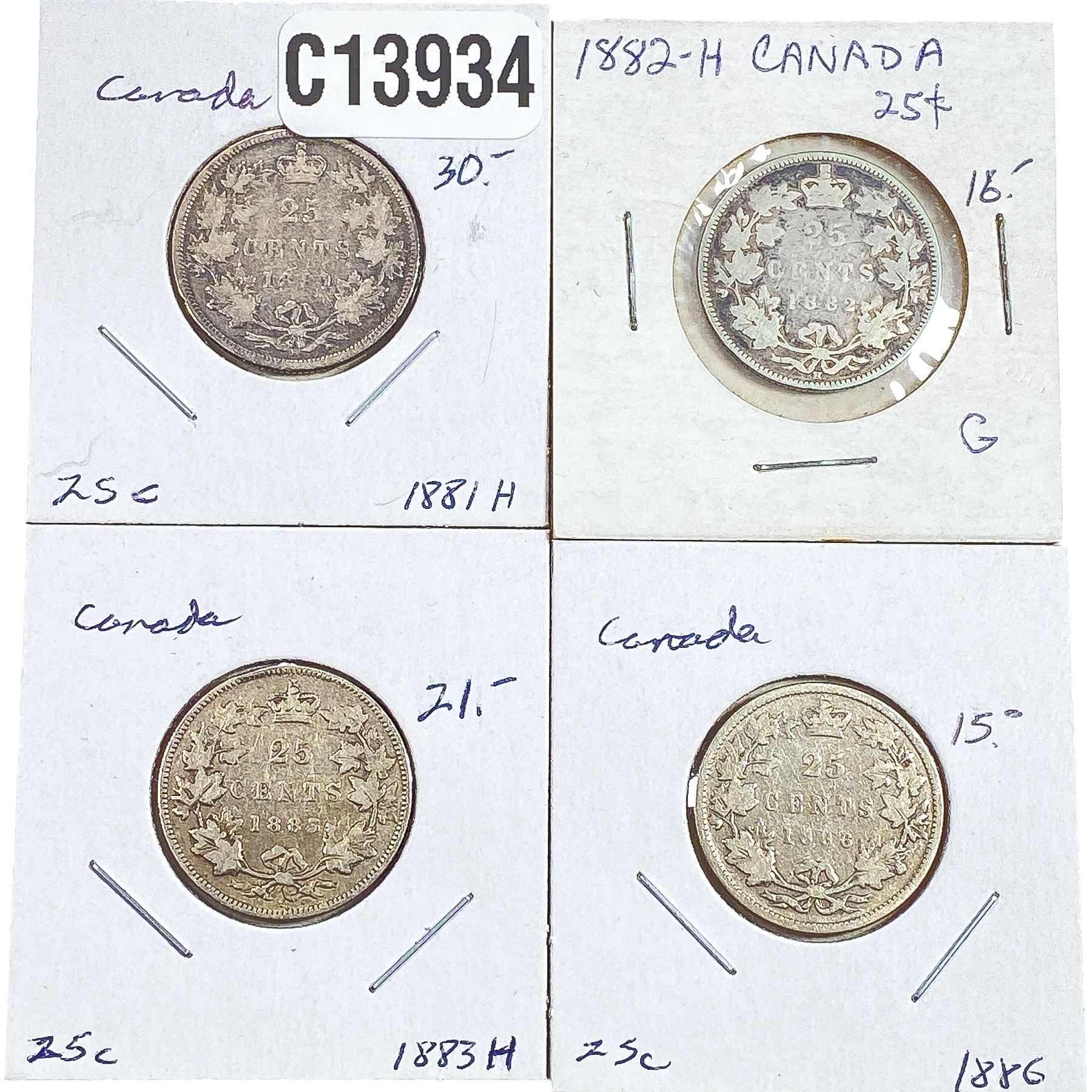 1881-1886 Better Date Canada Silver Quarter [4 Coins]