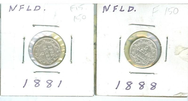 1881 & 1888 Nfld 5¢. Lot of 2 coins both with small problems.
