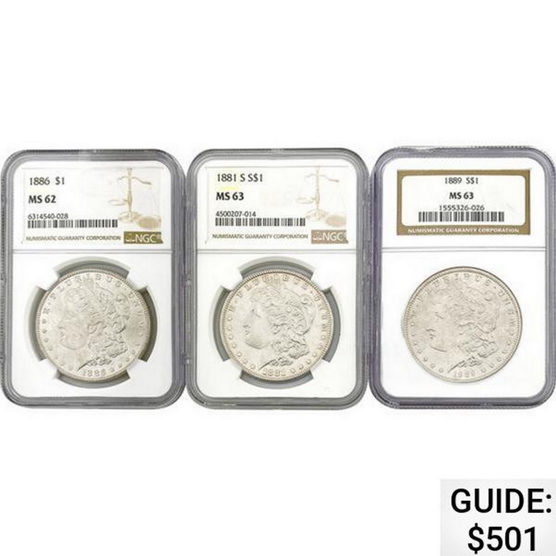 1881-1889 [3] Morgan Silver Dollar NGC MS62-63