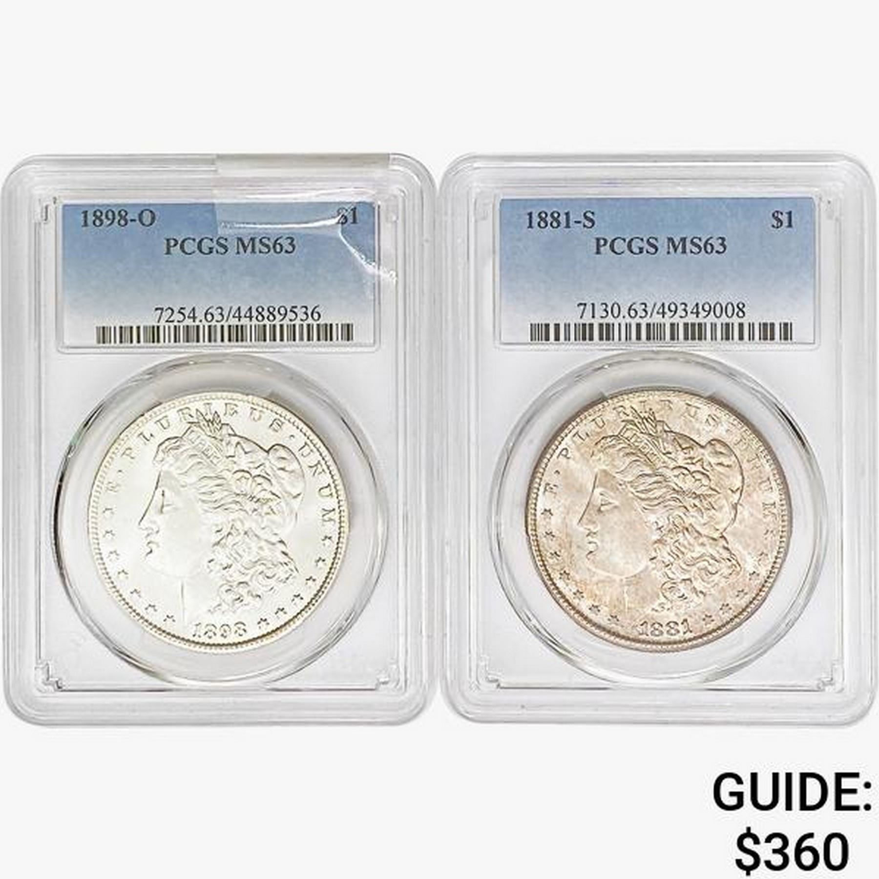 1881&1898 [2] Morgan Silver Dollar PCGS MS63