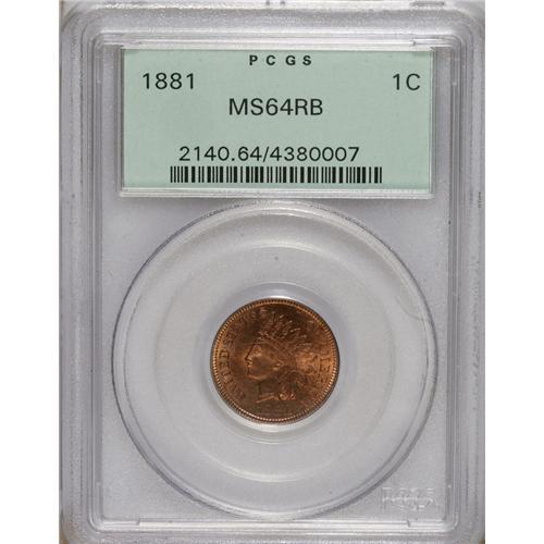 <B>1881 1C MS64 Red and Brown PCGS.</B></I> PCGS Population (170/56). NGC Census: (134/132). Mintage: 39,211,576. Numismedia Wsl. Price: $160. (#2140)<BR><BR><b>Shipping:</b> Coins & Currency (<a target="_blank" href="http://www.heritageauctions.com/common/shipping.php">view shipping information</a>)