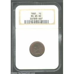 1881 1C MS65 Red NGC. A well struck and lustrous Gem that has deep orange-gold fields with a hint of rose-violet color on the devices. A gorgeously preserved Cent. Important notice: We expect to be auctioning lots at the rate of 200-250 per hour. Sometimes eBay Premier live bid software cannot keep up with that pace, so we strongly recommend that you place a realistic proxy bid now as insurance to avoid disappointment. Also please note that all Heritage/CAA lots purchased through eBay Premier carry a 20% Buyer's Premium. Please make sure you read the Terms and Conditions.