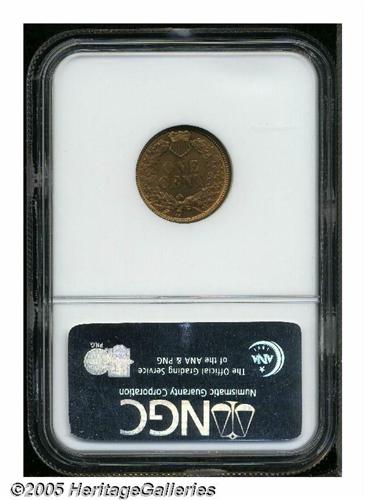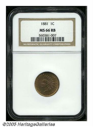 <B>1881<1C> MS66 Red and Brown NGC.</B></I> Well struck with bright red-orange and gold toning, and impeccably preserved surfaces that seem contact-free. There are a few flyspecks on each side of the coin, but they have a minimal impact on the overall appearance of the piece. Population: 23 in 66 Red and Brown, 1 finer in Red and Brown (4/05).