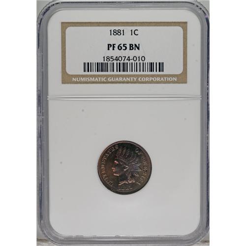 <B>1881 1C PR65 Brown NGC.</B></I> NGC Census: (21/15). PCGS Population (12/11). Mintage: 3,575. Numismedia Wsl. Price: $260. (#2330)<BR><BR><b>Shipping:</b> Coins & Currency (<a target="_blank" href="http://www.heritageauctions.com/common/shipping.php">view shipping information</a>)
