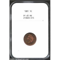 1881 1C PR65 Red and Brown NGC. The glittering mirrored fields have rich ruby-red and tan-gold color. A razor-sharp Gem with remarkably clean surfaces. Important notice: We expect to be auctioning lots at the rate of 200-250 per hour. Sometimes eBay Premier live bid software cannot keep up with that pace, so we strongly recommend that you place a realistic proxy bid now as insurance to avoid disappointment. Also please note that all Heritage/CAA lots purchased through eBay Premier carry a 20% Buyer's Premium. Please make sure you read the Terms and Conditions.