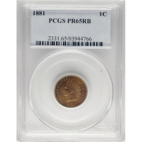 <B>1881 1C PR65 Red and Brown PCGS.</B></I> PCGS Population (69/13). NGC Census: (144/84). Mintage: 3,575. Numismedia Wsl. Price for NGC/PCGS coin in PR65: $460. (#2331)<BR><BR><b>Shipping:</b> Coins & Currency (<a target="_blank" href="http://www.heritageauctions.com/common/shipping.php">view shipping information</a>)