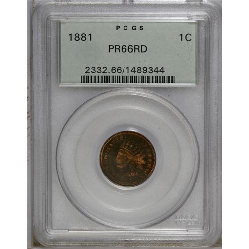 1881 1C PR66 Red PCGS. A flashy reddish-orange example