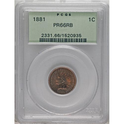 <B>1881 1C PR66 Red and Brown PCGS.</B></I> Orange, rose-red, and apple-green embrace this intricately struck and unabraded specimen. Exemplary despite a pinpoint fleck near the chin. Housed in a green label holder.<BR><BR><b>Shipping:</b> Coins & Currency (<a target="_blank" href="http://www.heritageauctions.com/common/shipping.php">view shipping information</a>)