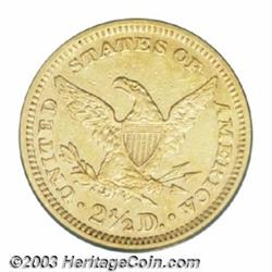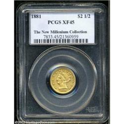 <table><tr><td><TABLE cellSpacing=0 cellPadding=0 width="100%" bgColor=#000000 border=0><TBODY> <TR><TD width="100%"><TABLE cellSpacing=1 cellPadding=3 width="100%" border=0><TBODY><TR><TD width="100%" bgColor=#79735c><FONT face=arial color=#ffffff size=3><B>Description</B> </FONT></TD></TR><TR><TD width="100%" bgColor=#ffffff><FONT face=arial size=2><B>1881 $2 1/2 XF45 PCGS.</B></I> The 1881 is a rare issue in the Coronet series with only 640 business strikes produced. A few dozen pieces survive today in all grades with high grade pieces especially quite elusive. Sharply struck with numerous small abrasions scattered about, the fields retain some underlying prooflike finish. As an identifier, a diagonal staple scratch is noted in the obverse field behind Liberty's head.<BR><I>From The New Millennium Collection.</B></I> </FONT></TD></TR></TBODY></TABLE></TD></TR></TBODY></TABLE><BR><A name=PricesRealized></A><TABLE cellSpacing=0 cellPadding=0 width="100%" bgColor=#000000 border=0><TBODY><TR><TD width="100%"><TABLE cellSpacing=1 cellPadding=3 width="100%" border=0><TBODY><TR><TD width="100%" bgColor=#79735c><A name=PR><FONT face=arial color=#ffffff size=3><B>Previous Prices from Heritage Auctions</B> </FONT></A></TD></TR><TR><TD bgColor=#f6f6ed><TABLE cellSpacing=0 cellPadding=0 width="100%" border=1><TBODY><TR><TD align=middle width="33%"><B>Date</B></TD><TD align=middle width="33%"><B>Service</B></TD><TD align=middle width="33%"><B>Price</B></TD></TR><TR bgColor=whitesmoke><TD width="33%"><B>02/01/1999</B></TD><TD width="33%">PCGS</TD><TD width="33%">$4,140.00</TD></TR></TBODY></TABLE></TD></TR><TR><TD bgColor=#ffffff><FONT face=arial size=1 ?>PLEASE NOTE: All prices realized reflect the final hammer price PLUS the buyer's premium in auctions that charge a buyer's premium. Each item has a notation at the top of the listing indicating whether that lot included a buyer's premium. Example: A item that sells with a final hammer price of $100 and a 20% buyer's premium will display with a price realized of $120. All information listed is intended to be as accurate as possible, but errors are possible. Please use this guide carefully and inform us of any inaccuracies. </FONT></TD></TR></TBODY></TABLE></TD></TR></TBODY></TABLE><BR><TABLE cellSpacing=0 cellPadding=0 width="100%" bgColor=#000000 border=0><TBODY><TR><TD width="100%"><TABLE cellSpacing=1 cellPadding=3 width="100%" border=0><TBODY><TR><TD width="100%" bgColor=#79735c colSpan=6><FONT face=arial color=#ffffff size=3><B>Price Guide*</B> </FONT></TD></TR><TR bgColor=#f6f6ed><TD align=middle><B>Grade</B> </TD><TD align=middle><B>Coin World<BR>(Trends)</B> </TD><TD align=middle><B>Numismedia<BR>Retail</B> </TD><TD align=middle><B>Numismedia<BR>Wholesale</B> </TD><TD align=middle><B>Coin<BR>Universe</B> </TD><TD align=middle><B>Heritage<BR>Value Index</B> </TD></TR><TR bgColor=#ffffff><TD align=middle>40</TD><TD align=right>$2,450.00</TD><TD align=right>---</TD><TD align=right>$2,475.00</TD><TD align=right>$2,950.00</TD><TD align=right>$1,950.00</TD></TR><TR style="FONT-WEIGHT: bold" bgColor=#cccfdd><TD align=middle>45</TD><TD align=right>$2,900.00</TD><TD align=right>---</TD><TD align=right>---</TD><TD align=right>---</TD><TD align=right>$2,356.11</TD></TR><TR bgColor=#ffffff><TD align=middle>50</TD><TD align=right>$4,250.00</TD><TD align=right>---</TD><TD align=right>$3,350.00</TD><TD align=right>---</TD><TD align=right>$2,972.22</TD></TR><TR bgColor=#ffffff><TD colSpan=6><FONT size=1>*All information listed is intended to be as accurate as possible, but errors are possible. No item may be returned or refused based on this information which is provided as a service to our customers. You should contact each pricing source directly to determine the accuracy of this information. </FONT></TD></TR></TBODY></TABLE></TD></TR></TBODY></TABLE><BR><TABLE cellSpacing=0 cellPadding=0 width="100%" bgColor=#000000 border=0><TBODY><TR><TD width="100%"><TABLE cellSpacing=1 cellPadding=3 width="100%" border=0><TBODY><TR><TD width="100%" bgColor=#79735c><FONT face=arial color=#ffffff size=3><B>Population Guide</B> </FONT></TD></TR><TR bgColor=#ffffff><TD align=middle><!-- Begin Output of Population Grid--><TABLE cellSpacing=0 cellPadding=0 width="100%" border=0><TBODY><TR><TD vAlign=center><TABLE cellSpacing=0 width="100%" border=1 cellsadding="3"><TBODY><TR><TD vAlign=center><TABLE cellSpacing=0 cellPadding=3 width="100%" border=1><TBODY><TR><TD vAlign=center align=middle bgColor=#f0f1e8 colSpan=2 <CENTER><FONT face=Arial size=2><B>PCGS Pop </B></FONT><CENTER></CENTER></TD><TD vAlign=center align=middle bgColor=#f0f1e8 colSpan=2><CENTER><FONT face=Arial size=2><B>NGC Pop</B></CENTER></FONT></TD></TR><TR><TD vAlign=center><FONT face=Arial size=2>(45)</FONT> </TD><TD vAlign=center align=right><FONT face=Arial size=2>6</FONT> </TD><TD vAlign=center><FONT face=Arial size=2>(45)</FONT> </TD><TD vAlign=center align=right><FONT face=Arial size=2>0</FONT> </TD></TR><TR><TD vAlign=center><FONT face=Arial size=2>(>45)</FONT> </TD><TD vAlign=center align=right><FONT face=Arial size=2>39</FONT> </TD><TD vAlign=center><FONT face=Arial size=2>(>45)</FONT> </TD><TD vAlign=center align=right><FONT face=Arial size=2>52</FONT> </TD></TR></TBODY></TABLE></TD></TR></TBODY></TABLE></TD></TR></TBODY></TABLE><!-- End Output of Population Grid--></TD></TR></TBODY></TABLE></TD></TR></TBODY></TABLE><BR><TABLE cellSpacing=0 cellPadding=0 width="100%" bgColor=#000000 border=0><TBODY><TR> Important notice: Heritage usually auctions material at the rate of 200-250 lots per hour. On some occasions eBay Live bid software or the Internet may not be able to keep up with the pace of the auction. We recommend placing a realistic absentee bid now as insurance to avoid disappointment. Occasionally the auctioneer may eliminate or reject an eBay Live bid, and the auctioneer may also reopen a lot after the close of the eBay live bidding (usually because we missed an audience bid), and may rejec