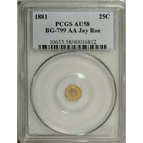 1881 25C Indian Octagonal 25 Cents, BG-799AA, R.7 AU58